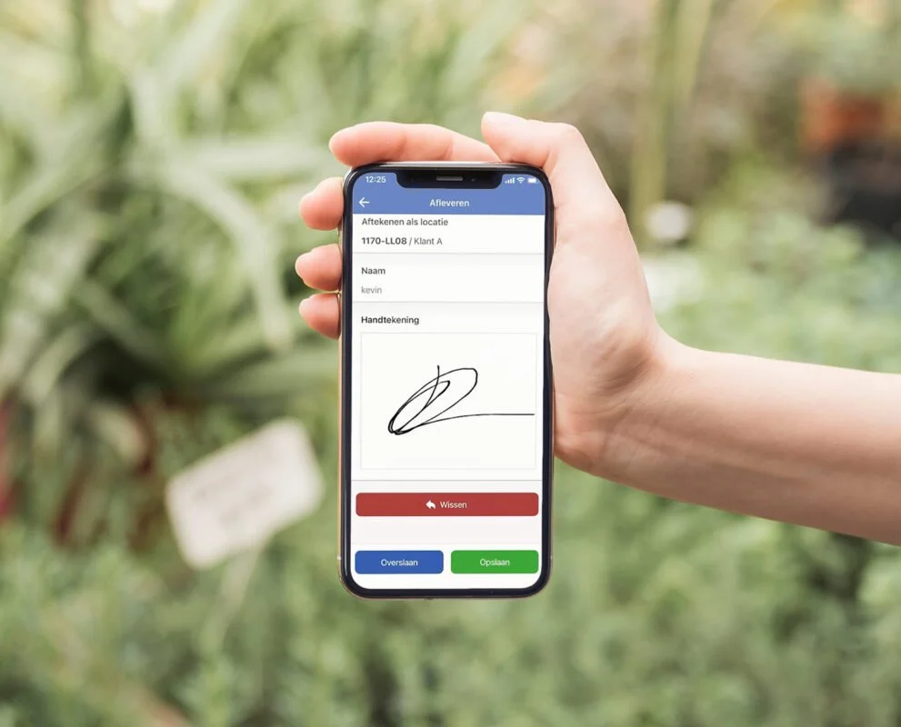 In de mobiele app kan er direct digitaal worden afgetekend voor ontvangst en eventuele onregelmatigheden worden vermeld. Ook een derde partij kan aftekenen voor ontvangst. Papierwerk en extra administratie worden hierdoor aanzienlijk verminderd. Met de mobiele applicatie van TrackOnline is de emballage administratie altijd up-to-date.