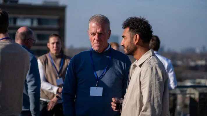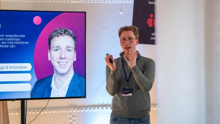 Jeroen’s presentation sparked a lot of excitement and new insights, leading to lively discussions. During the break, attendees continued the conversation on the rooftop terrace, exchanging experiences and ideas – naturally, with a drink in hand and a stunning view over Delft.